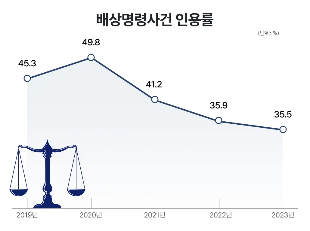 형사배상명령은 피해자 입장에서 간편하고 신속한 제도이지만, 실제로는 인용률이 높지 않습니다. 법원 통계에 따르면 2023년 기준 형사배상명령 인용률은 약 35.5%에 그쳤습니다. (출처: 대법원 2023 사법연감)